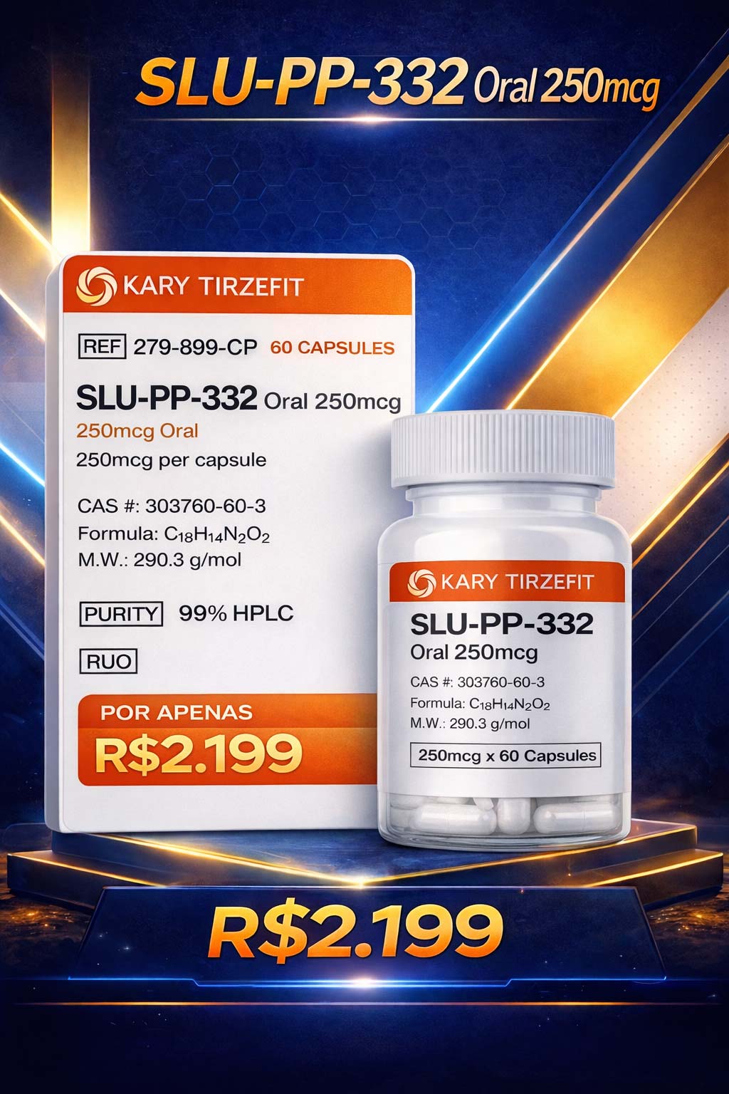 O SLU-PP-332 atua na família de receptores relacionados ao estrogênio (ERR), promovendo melhorias na função mitocondrial e na oxidação de ácidos graxos. Isso resulta em uma maior eficiência metabólica e saúde muscular, tornando-o uma solução ideal para aqueles que não podem se exercitar regularmente.